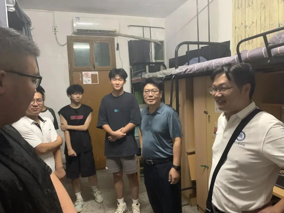 为了解公司新生的住宿生活情况,引导新生尽快适应新生活新环境。9月8日晚,公司领导班子与辅导员、新生班主任一起走访公司24级新生宿舍,看望慰问刚刚入学的新生。